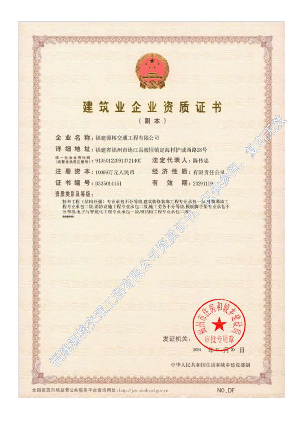 公司現已發展成集房建、裝飾裝修、市政、智能化、公路、交通工程等于一體的綜合性企業。 公司擁有各類職稱人員286人(高級工程師16人,中級工程師68人,建造師31人等)。公司擁有固定標線隊伍3隊及5套完整的劃線設備,公司還擁有多版權法反光標志生產線、道路用涂料生產線,各種工程施工運輸車輛(高空作業車、工程搶修車、護欄清洗車、標線施劃車、除線車等)總計20余輛 ...